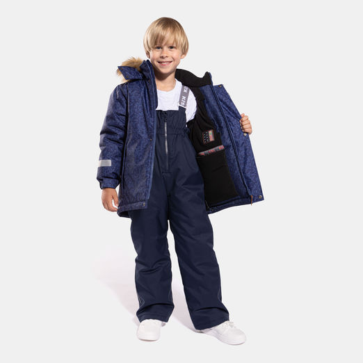 Куртка со съемным капюшоном с регулировкой по объему и со съемной опушкой из искусственного меха, защищает от пронизывающего ветра и гарантирует безопасность во время игр на свежем воздухе. Подкладка капюшона, стойки воротника, спинки и манжет выполнены из флиса. Регулировка манжет липучкой. Центральная молния закрыта ветрозащитной планкой на кнопках. Предусмотрен ограничитель молнии для защиты подбородка. Утяжка по низу куртки защитит от ветра (кулиска). Два внешних кармана на молнии надежно спрячут всякую мелочь. Вшивной термометр поможет определить, достаточно ли тепло одет ребенок.